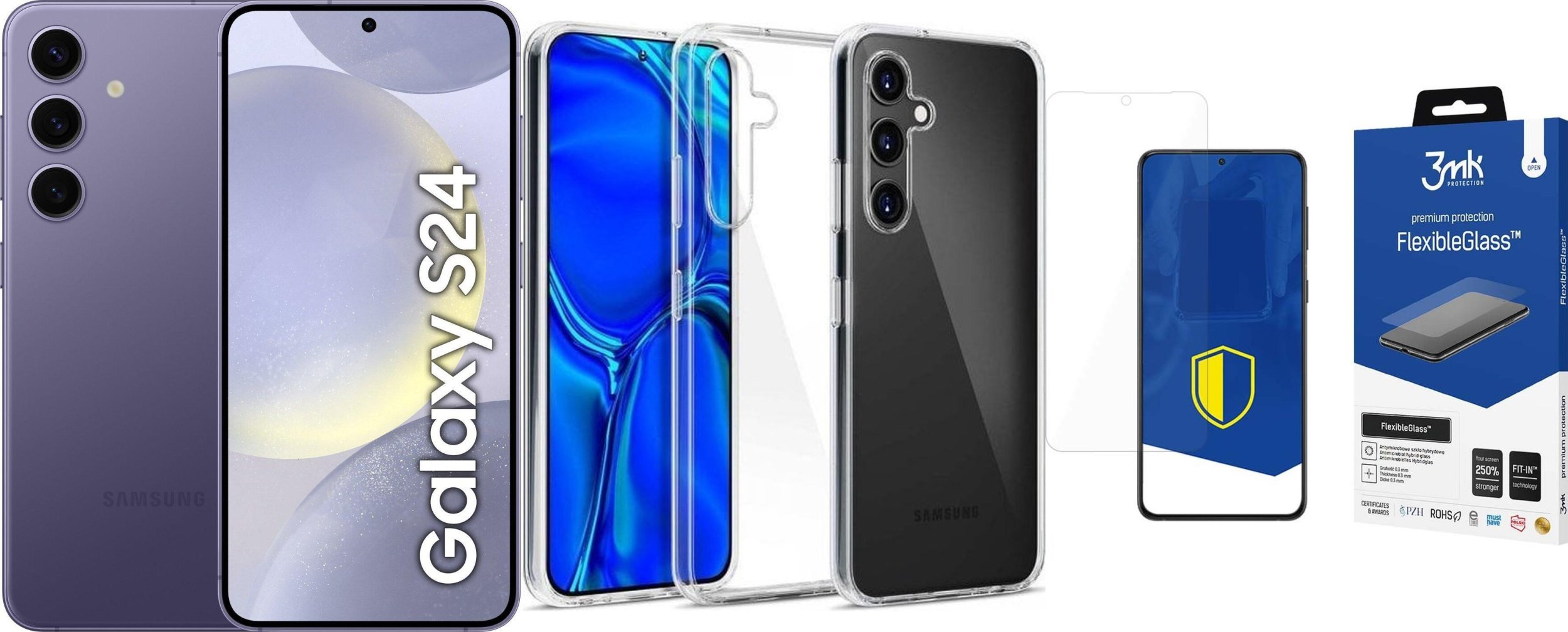 Smartfon Samsung Galaxy S24 5G 8/256GB Fioletowy (SM-S921BZV) + FlexibleGlass + Etui Clear Case